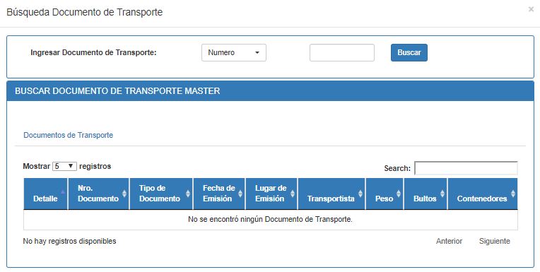 Se da click en el botón Agregar Documento Master y se muestra la siguiente ventana.
