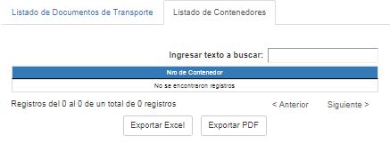 En la pestaña Listado de Contenedores, se puede visualizar los Contenedores. |