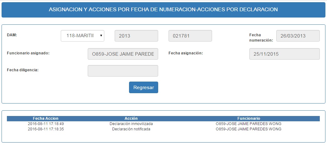 Se puede seleccionar cualquiera de los registros seleccionando el link "Ver".