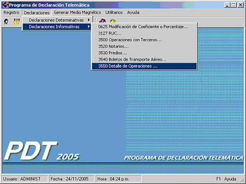 Una vez instalado el PDT, usted podrá ejecutarlo, a través del modulo de declaraciones informativas de su PDT