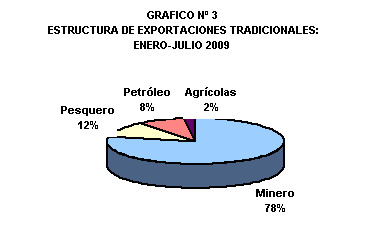 Cabe recordar la gran participación de las exportaciones de minerales en este grupo ya que representaron el 78% del total tradicional durante el período enero-julio de este año.